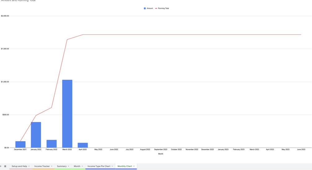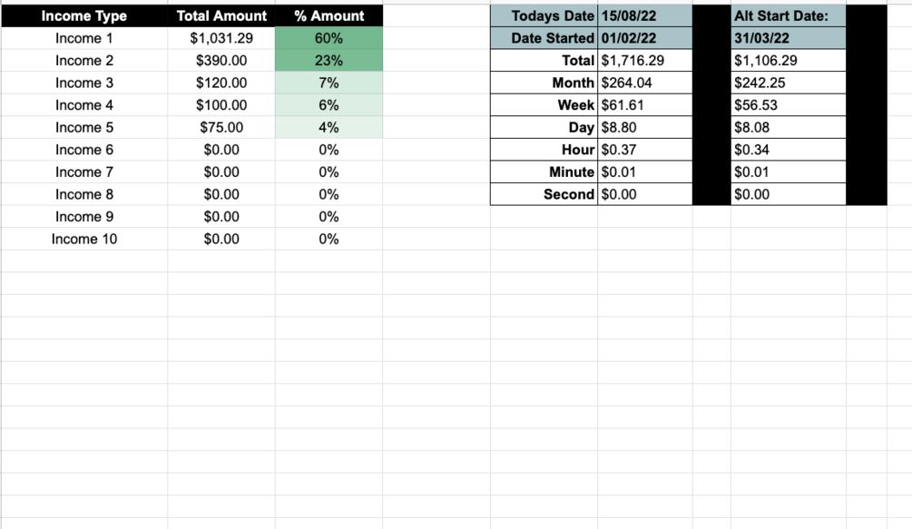 A super simple income tracking spreadsheet which is super easy to keep up to date and view the results of!